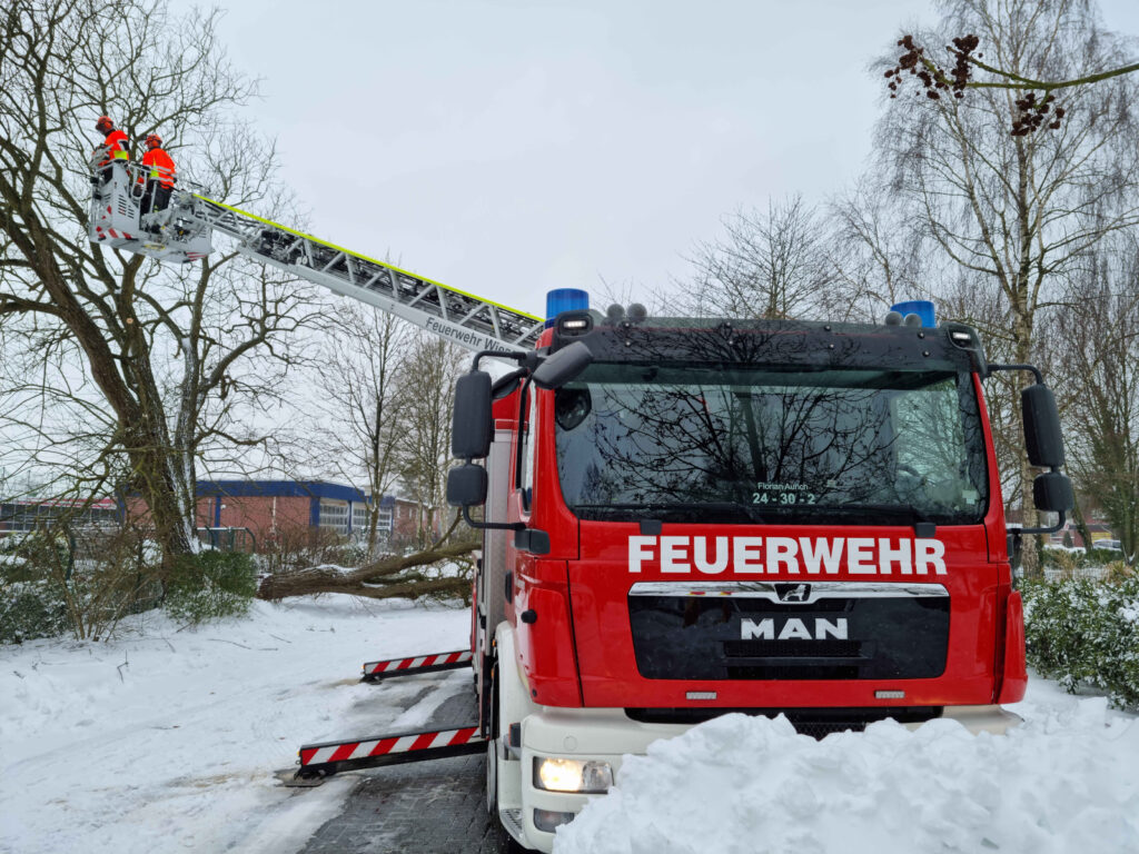 Um die Gefahrenstelle zu beseitigen, rückte die Feuerwehr Wiesmoor mit der Drehleiter aus. In gut eineinhalb Stunden schnitten die Einsatzkräfte den Baum soweit zurück, bis keine Gefahr mehr von ihm ausging. Der Bauhof sperrte den Bereich ab, da die Reste des Baumes zu einem späteren Zeitpunkt in Eigenregie vom angrenzenden Parkplatz entfernt werden sollen.