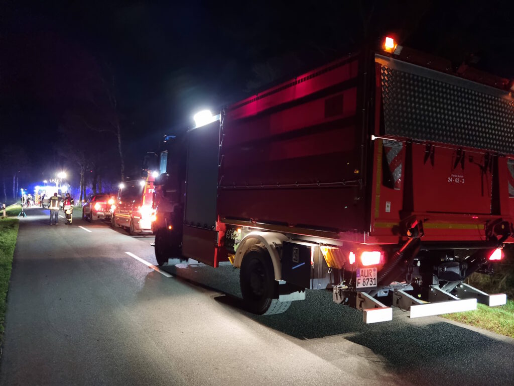 Am Donnerstagabend ereignete sich auf dem Mullberger Weg im Friedeburger Ortsteil Bentstreek ein schwerer Verkehrsunfall mit zwei beteiligten Pkw. Dabei wurde eine Person tödlich verletzt.